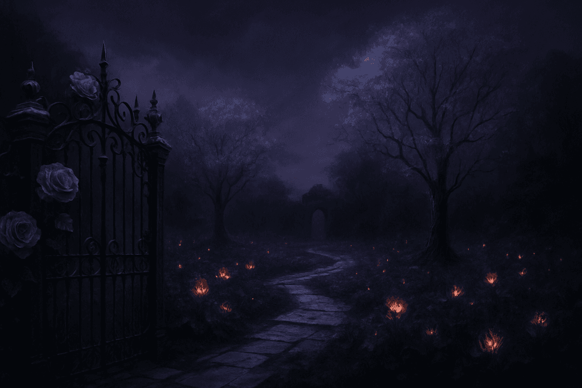 Seven months of grief have led you to a gate that was not there yesterday — wrought iron, covered in impossible roses, standing open in the cemetery wall like an invitation from the dead. Beyond it lies the Midnight Garden: a realm of eternal twilight where flowers sing, paths rearrange themselves, and every bloom grows from a memory of loss. Oren, the Garden Keeper, is ancient and achingly gentle — not human, not ghost, something older — and he tends to grief the way he tends to his flowers: with patience, with care, with hands that know exactly where it hurts. You came looking for someone you lost. You found someone who was lost far longer.
